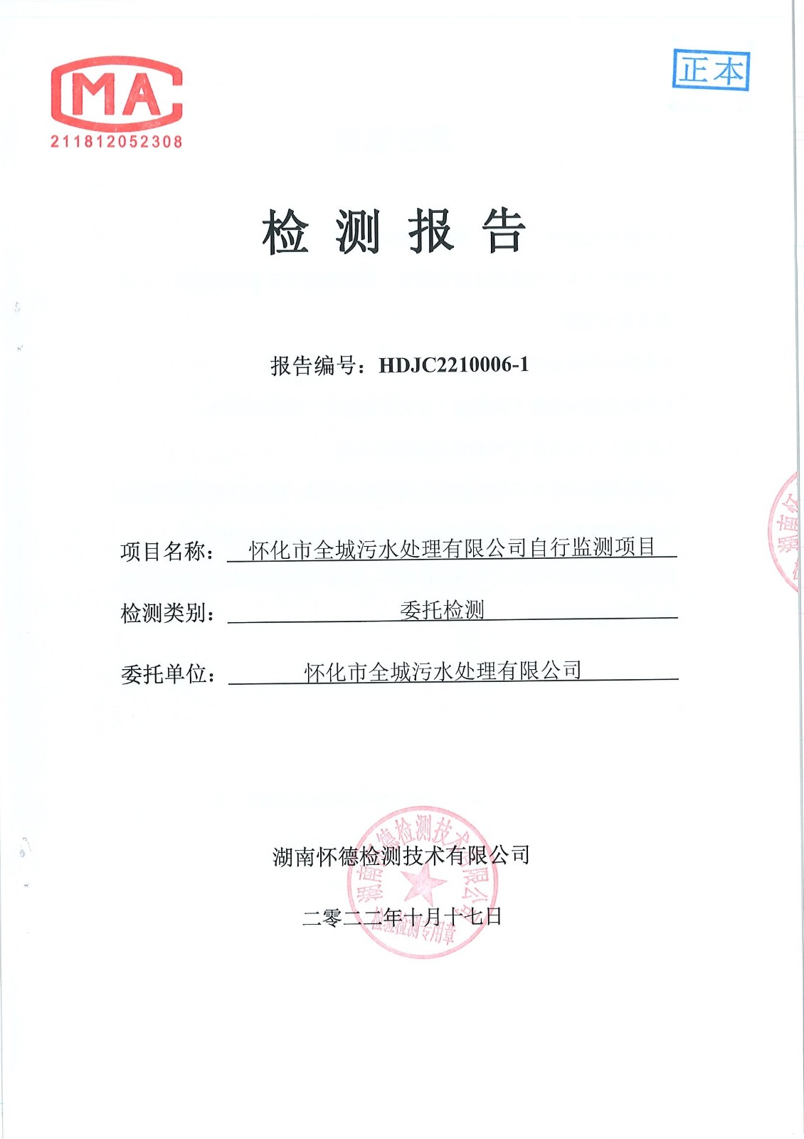 下一篇:懷德檢測 2022年9月 污水檢測報告